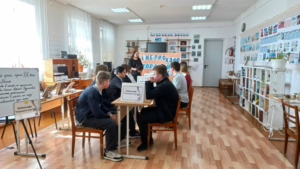 В Юргамышской центральной библиотеке состоялся «Литературный приём: кухня XIX века» в Библио-кафе «Хороший вкус». Данное событие разработано в рамках программы по популяризации культурных мероприятий среди молодёжи «Пушкинская карта». Участников литературного кафе встретила Чубарова К.С. – библиотекарь детского сектора. Посетителями стали учащиеся МКОУ Гагарьевской СОШ (Рогачкова И.А. – организатор группы).