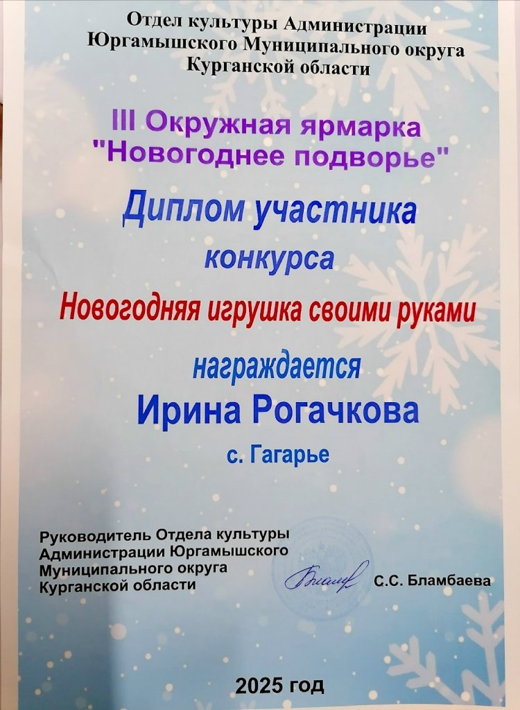 ТИС Юргамышского округа получил диплом за участие в группе "муниципальных округов в областном конкурсе "Лучший туристско-информационный центр Курганской области"..